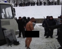 protestuesit, mes tyre një gazetaPolicët ukrainas kanë torturuar një nga protestuesit të cilët po marrin pjesë në protestat e shumta që kanë pushtuar kryeqytetin e Kievit dhe më gjerë. Është dhunuar edhe një gazetar. (Foto/Protestuesi i dhunuar)