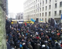 godinën e Këshillit BashkiakKaos në kryeqytetin e Ukrahinës në Kiev. Protestuesit e udhëhequr nga opozita kanë marrë godinën e Këshillit Bashkiak. Raportohen dy persona të plagosur. (Në foto: Protesta në Kiev)