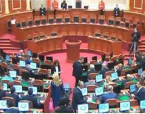 pa bojkot falë partive, popullitKuvendi i Shqipërisë ka zhvilluar rreth orës 18:00 për 15 minuta seancën e parë të legjislativit të ri të pas zgjedhjeve të 23 qershorit. Fjalën hyrëse e ka mbajtur ish-kryetari i grupit parlamentar të PS, '92-'97, Namik Dokle. "Kjo legjislaturë, nga të rrallat që nis pa bojkot. Kjo falë forcave politike këtu, e mbi të gjitha falë popullit shqiptar, që larg zhurmave vendosi me votën e tij të ndryshojë ritmin drejt BE", theksoi Dokle. Të pranishëm, edhe kryeministri i ri, Edi Rama, ish-kryeministri Sali Berisha dhe ish-kryetarja e Kuvendit, Jozefina Topalli. (Në foto: Nga salla e Kuvendit sot).