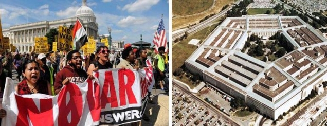 sulm intensiv treditor mbi SiriSHBA-ja është duke planifikuar një sulm intensiv treditor mbi Siri, një bombardim më të gjatë se ai që ishte parashikuar në fillim. (Në foto:Protesta në SHBA kundër luftës në Siri dhe Pentagoni)