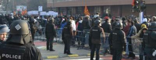 buxhetin 2013 mes protestashForca të shumta të policisë janë vendosur para Parlamentit, ku janë tubuar përkrahësit e opozitës, të cilët kundërshtojnë miratimin e projekt–buxhetit 2013.