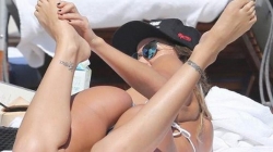 foto seksi në dushAjo është fotografuar më pas me disa miq në një plazh ku sërish shfaqte gjithë arsenalin e saj në sajë të një palë bikini transparente.