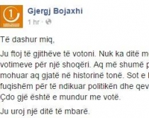 Bojaxhi nuk u prononcua për mediat por me anë të një postimi në Facebook fton të gjithë shqiptarët të votojnë duke theksuar rëndësinë që ka vota për të ndikuar qeverisjen dhe politikën.