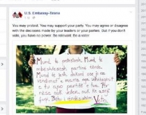 Nuk ke fuqi, nëse nuk voton.VOTO"Nuk ke fuqi, nëse nuk voton"- shkruan ambasada amerikane në mesazhin e saj sensibilizues në rrjetin social në faqen zyrtare të Facebook. Ambasada përmes këtij mesazhi bën thirrje për pjesëmarrje në votime duke u bërë pjesë e rëndësishme e ndryshimit të qytetit.