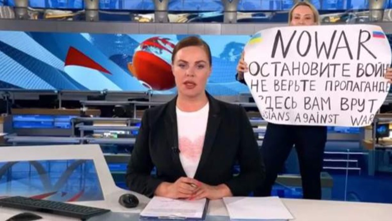 Pushtimi i Ukrainës, gazetarja e guximshme del live në televizionin rus me pankartën kundër luftës! Gjobitet me 257 euro
