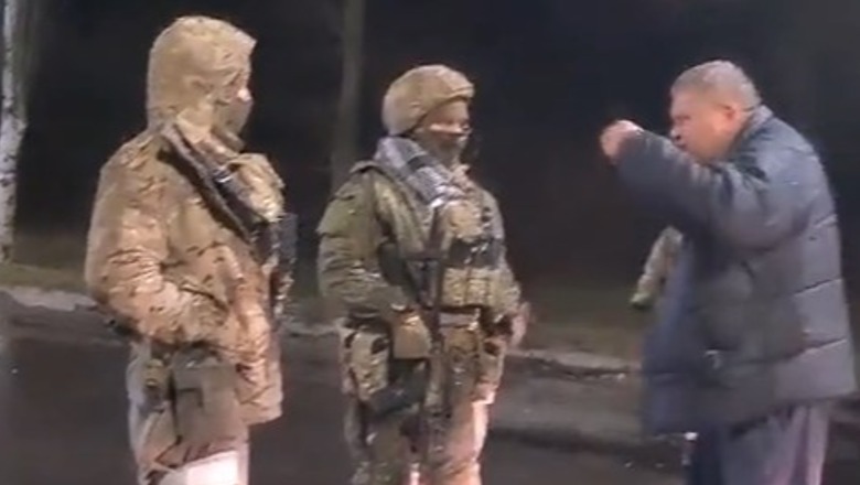 26 Shkurt 2022, 11:00Një i moshuar u ka bërtitur ushtarëve rusë dhe iu thotë se janë kukulla ndërsa i pyet nëse nuk kanë probleme për t’i zgjidhur Rusi. Ai shprehet në video se është rus që jeton në Ukrainë, por nuk i përkrahë këto veprime.