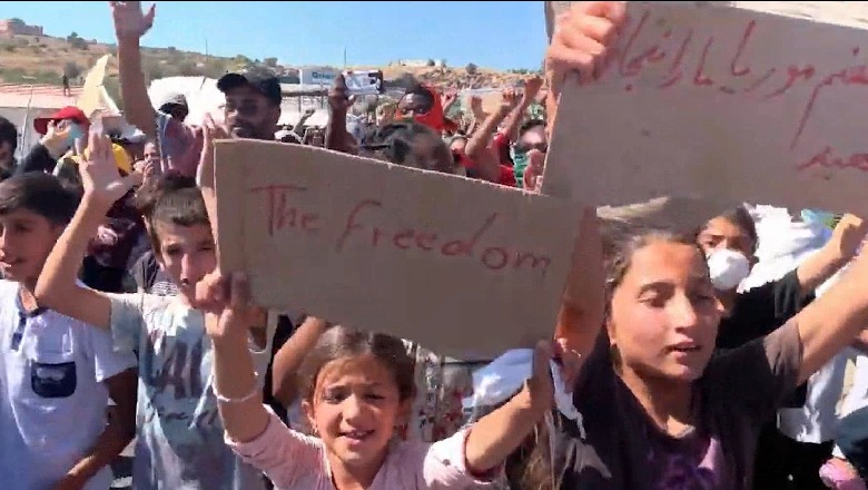 12 Shtator 2020, 15:33Të pastrehë prej disa ditësh emigrantë e kampit tanimë të djegur të Morias nw Greqi, protestojnë kundër ndërtimit të kampi të ri aty, duke ndarë të njëjtin mendim me banorët të lodhur tanimë nga strehimi i emigrantëve.