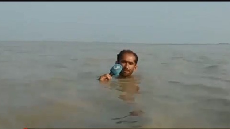 Gazetari pakistanez vendos një 'standard' të ri, raporton LIVE përmbytjet i mbuluar nga uji