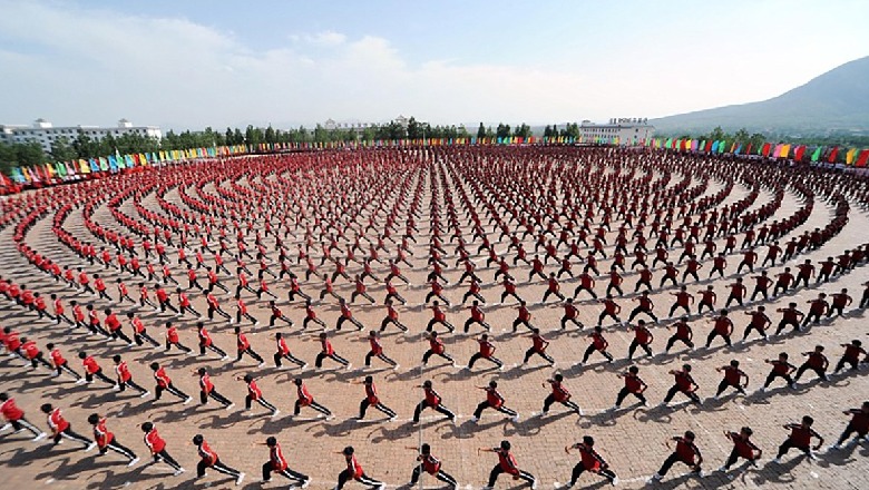 25 Prill 2019, 09:34Kamerat e “BBC EARTH” kanë fiksuar një video spektakolare në të cilën studentët e “Shaolin Kung Fu”, një nga stilet më të lashta dhe më të famshme të arteve marciale kineze, stërviten në unison të përsosur dhe hipnotizues.