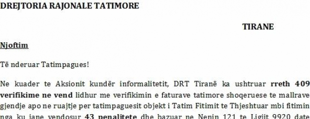 u mblodhën të ardhurat për 2015Drejtoria e Doganave ka sqaruar pas nëj analize të të ardhurave, arsyet pse nuk u mblodhën ata sic duhet për vitin 2015. Përmes një njoftimi për mediat Drejtoria e Përgjithshme e Doganave sqaron opinionin publik se në bashkëpunim të ngushtë me Fondin Monetar Ndërkombëtar, si edhe me organizma të tjera vendase dhe të huaja, ka zhvilluar një analizë të thellë të situatës në raport me mbledhjet e të ardhurave gjatë vitit 2015.