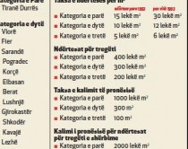 luksoze dhe profesionet e liraPaketa fiskale për vitin 2016 parashikon që të gjitha makinat me cilindratë mbi 3000 cm3 do të paguajnë një taksë prej 70 mijë lekë kur të regjistrojnë makinën për herë të parë. Çdo vit do paguajnë taksë vjetore prej 21 mijë lekësh, përveç taksës që paguajnë sot në shtet. Profesionet e lira do paguajnë kontributet si të vetëpunësuar në bazë të pagës maksimale 97 mijë lekë të reja, nga 22 mijë lekë që kanë paguar deri tani.