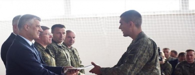 Presidenti i Republikës së Kosovës, Hashim Thaçi, mori pjesë sot në ceremoninë e gradimit të pesë pjesëtarëve të komuniteteve jo shumicë në Batalionin e Parë të Forcës së Sigurisë së Kosovës.