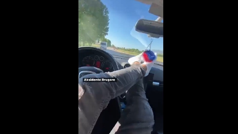 21 Korrik 2021, 13:48Të rinjtë shqiptare vijojnë që të shkelin rregullat e qarkullimit rrugor. Një video e cila është publikuar në rrjetet sociale, shfaqet një i ri, me këmbët në timon, duart në telefon, dhe duke ecur lirshëm në një rrugë, teksa shkëmbehet edhe me disa makina