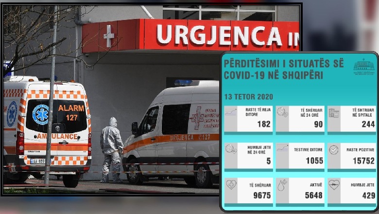 13 Tetor 2020, 16:01Këtë të martë COVID-i në vendin tonë ka shënuar një rekord të ri, që nuk ishte parë në vendin tonë gjatë javë të fundit. Sot shënohen 182 raste të reja dhe 5 humbje jete, ndërsa numri i të shtruarve në spitale shkon në 244.