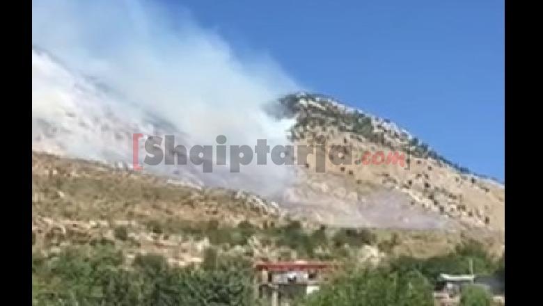 Digjen pyje e kullota nga zjarri në Tepelenë/ Flakët rrezikojnë banesat, asnjë zjarrfikëse në vendngjarje (VIDEO)
