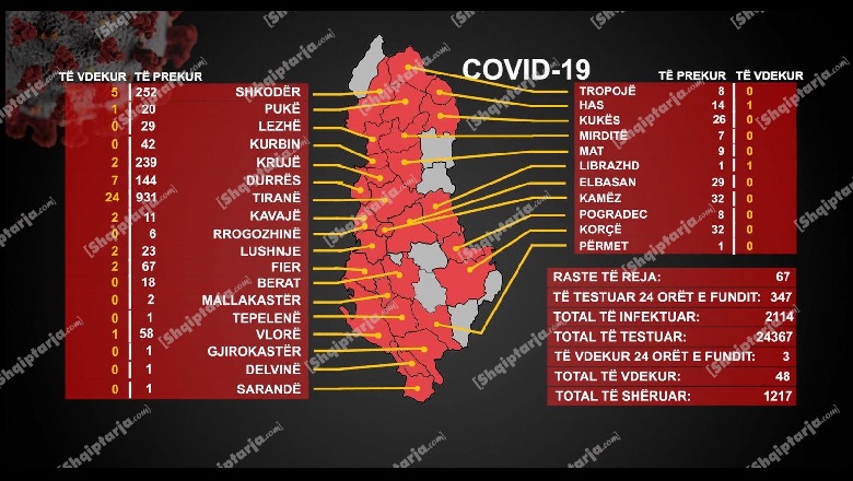Dy të viktima nga COVID brenda ditës, ndërrojnë jetë një vajzë 34-vjeçe dhe një 90-vjeçar! 67 raste të reja (VIDEO)