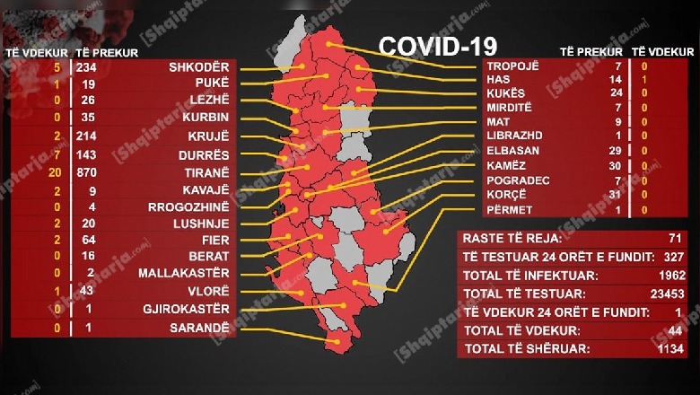 COVID-i i merr jetën 62-vjeçarit nga Tirana, 71 raste të reja, 15 të shtruar në 24 orë te Infektivi, 10 në terapi intensive, një intubuar