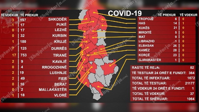 Shkon në 37 numri i viktimave! 82 raste të reja, vatra në 6 qytete! Rritet numri i pacientëve në terapi intesive! Testohet SPAK dhe GJKKO! (VIDEO)