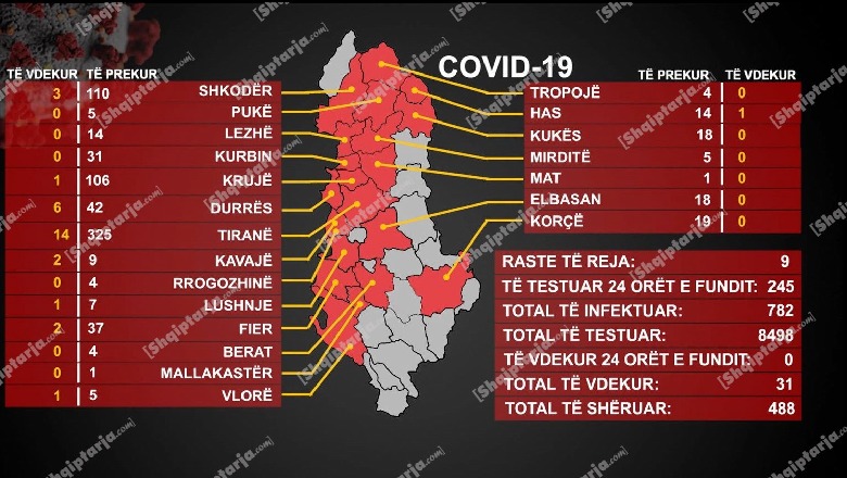9 raste të reja me COVID-19 gjatë 24 orëve të fundit/ 8 bashki me 'zero' vatra aktive! Ulet numri i të shtruarve në spital