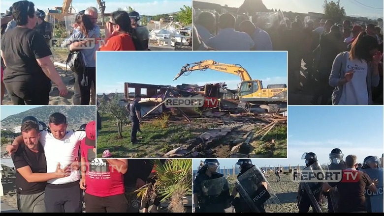 Rifillon shembja e bizneseve nga IKMT në Velipojë/ Përplasje me gurë e lopata mes banorëve! Policia hedh gazlotsjellës, i bie të fikët një vajze (VIDEO)