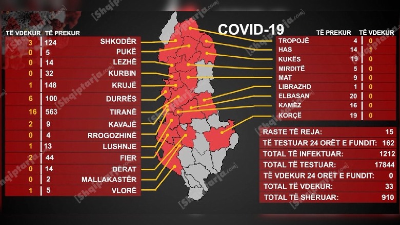 15 raste të reja me COVID në 24 orët e fundit, 2 u infektuan në Kamzë në një varrim! 12 të shëruar, 5 në terapi intensive