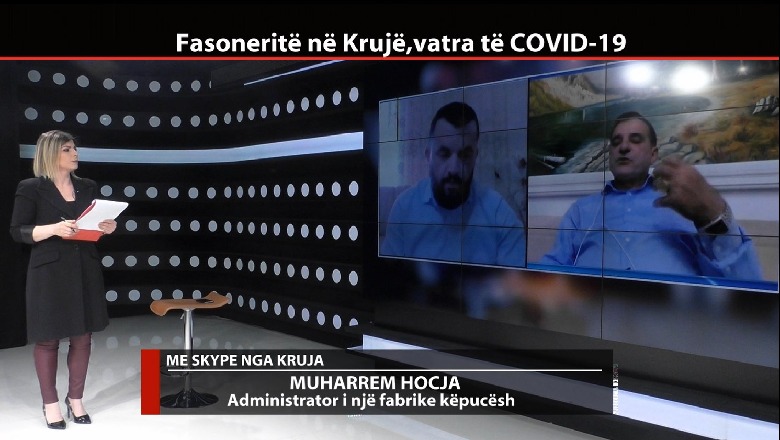 20 Prill 2020, 18:06Në një lidhje në skype për Report TV, përfaqësues nga dy fasoneri në Krujë kanë mohuar se në fabrikat e tyre ka të prekur me COVID-19 dhe se një rast i shfaqur kishte një muaj pa ardhur në punë, ndërkohë që theksojnë se të gjitha masat kanë qenë maksimale.