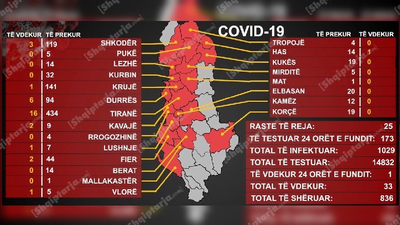 Vdes një 69-vjeçar, shkon në 33 numri i viktimave nga COVID-i, 25 raste të reja në 24 orë, 15 në vatër të re në call center në Laprakë, i vihet kyçi