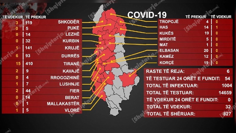 6 raste të reja me COVID, numri i të infektuarve nga marsi kalon mbi 1 mijë, 79% u shëruan (VIDEO)