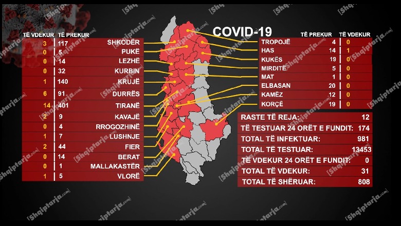 Shtohet numri i të shtruarve në spital/ 12 raste të reja me COVID-19 në 24 orë! Tirana 'mban kreun'