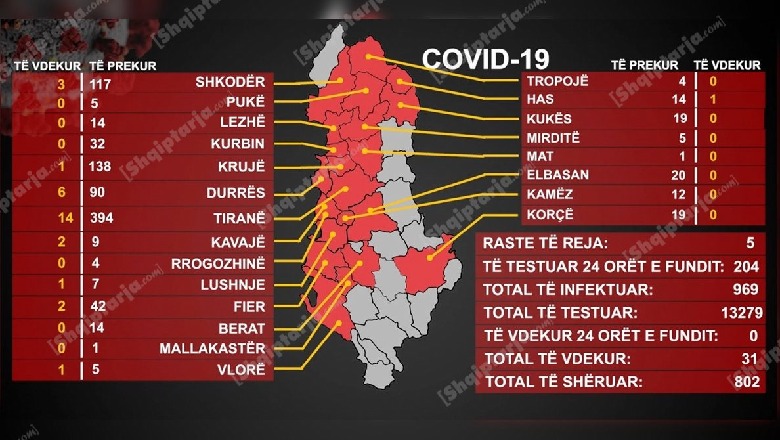 5 raste të reja me COVID në 24 orët e fundit, 13 të shëruar (VIDEO)