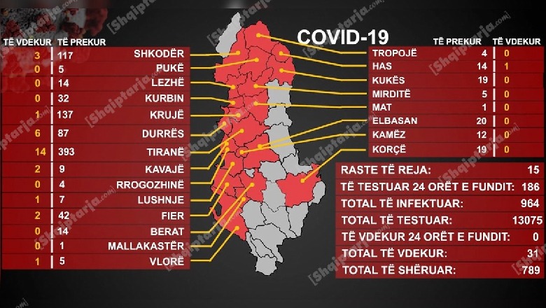 20 Maj 2020, 11:01Shqipëria nuk e ka fituar ende betejën me koronavirusin dhe këtë e vërtetojnë shifrat. Ndonëse një ditë më parë u konfirmua vetëm një rast i ri, sot ka pasur një rritje të ndjeshme duke shkuar në 15 raste pozitive gjatë 24 orëve të fundit nga 185 teste të kryera!