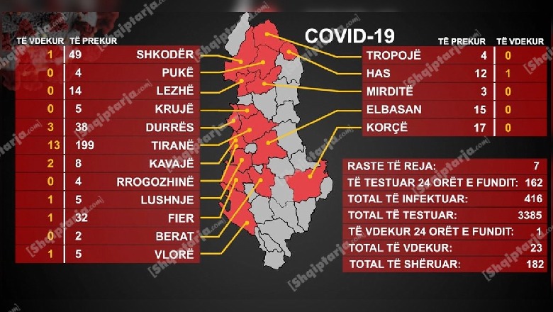 23 viktima nga COVID-19! Bie sërish kurba e të infektuarve! 7 raste të reja në 24 orë, 182 të shëruar...konfirmohen 8 policë të prekur (VIDEO)