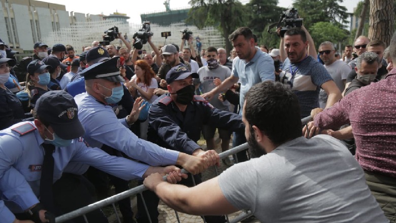 17 Maj 2020, 11:04Sipas policisë janë shoqëruar 37 persona në komisariat, por të gjithë janë lënë të lirë më pas. Ndërsa një efektiv policie është plagosur si rezultat i hedhjes së shashkave dhe mjeteve piroteknike nga protestuesit.
