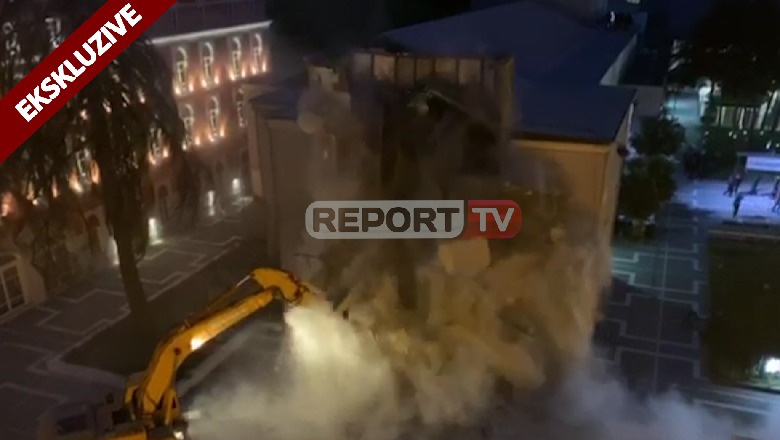 IKM dhe policia bashkiake kanë vijuar me shembjen e godinës së Teatrit Kombëtar, proces që ka nisur që në orën 04:30 të mëngjesit të sotëm.