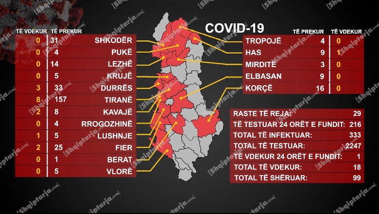 18 viktima me COVID! 29 raste të reja sot, në total numri i të infektuarve është 333 (VIDEO)