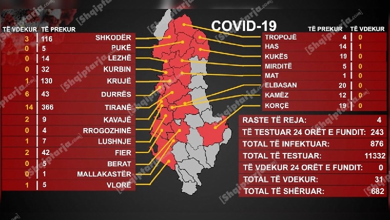 4 raste të reja, dita me pozitivitetin më të ulët, 28 të shëruar, vetëm 3 të dënuar aktivë me COVID, njëri në spital