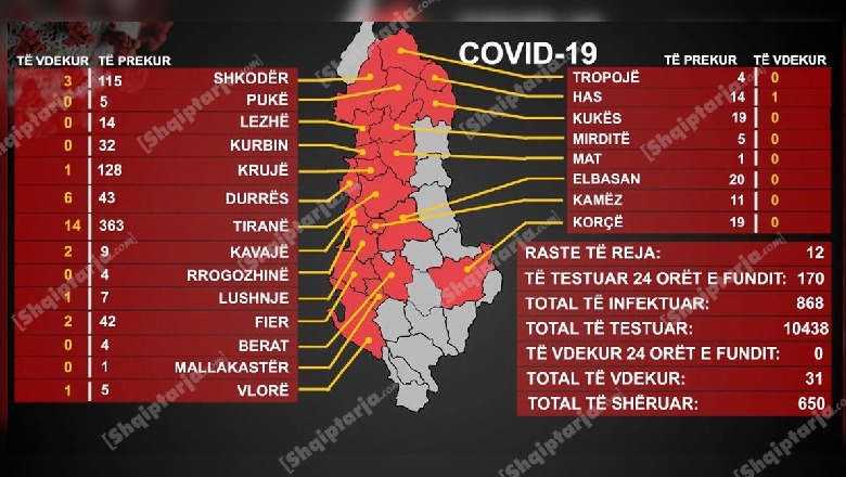 12 raste të reja me koronavirus/ 75% e të prekurve të shëruar! Ulet sërish numri i të shtruarve në 2 spitalet COVID (VIDEO)