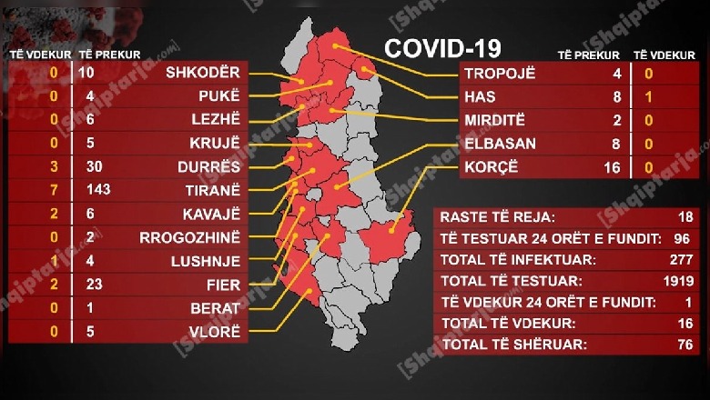 16 viktima me COVID-19/ Shkon në 8 numri i fëmijëve të prekur, 277 raste në total! (VIDEO)