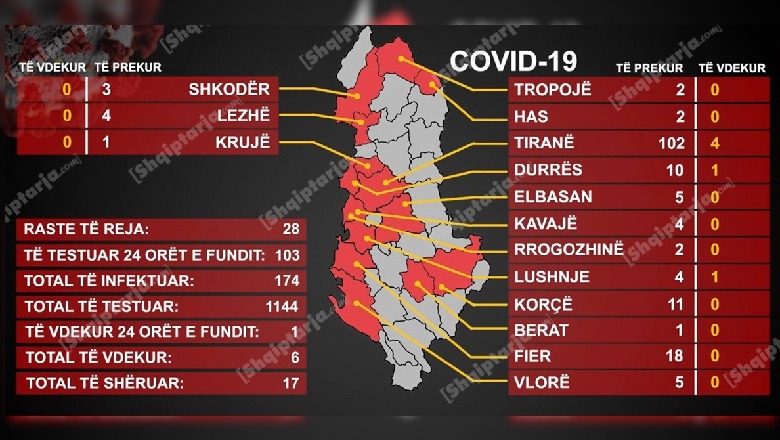 6 viktima me COVID-19/ 174 të infektuar...4 fëmijë! Dy rastet e para në Tropojë (Tirana 102 të prekur)