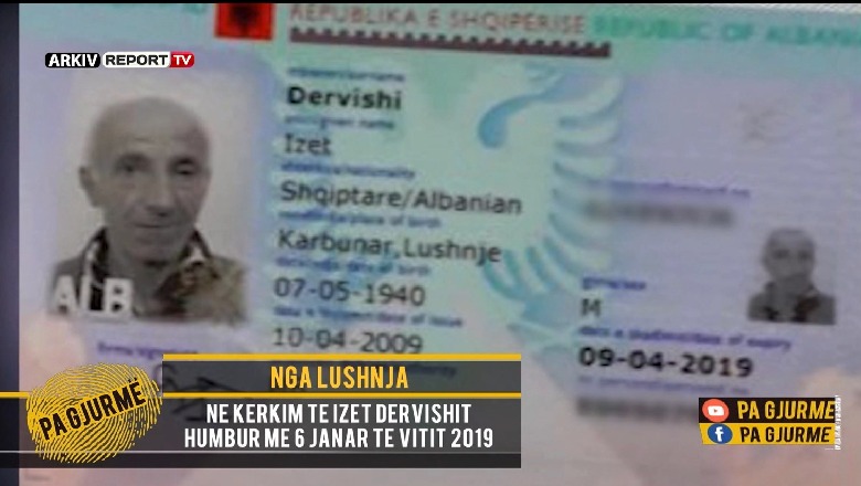 14 Janar 2020, 21:17Izet Dervishi 80-vjeç, baba i dy fëmijëve rezulton i zhdukur prej mëngjesit të 6 janarit. Rasti i tij u denoncua ditën e sotme në emisionin Pa Gjurmë nga kunata e tij Resmie Dervishi.
