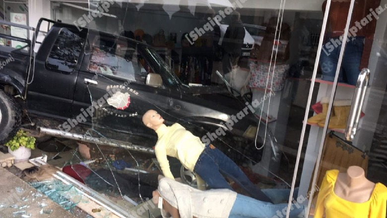 Sarandë, shoferi “harron” rrugën, përfundon në dyqanin e rrobave (VIDEO)