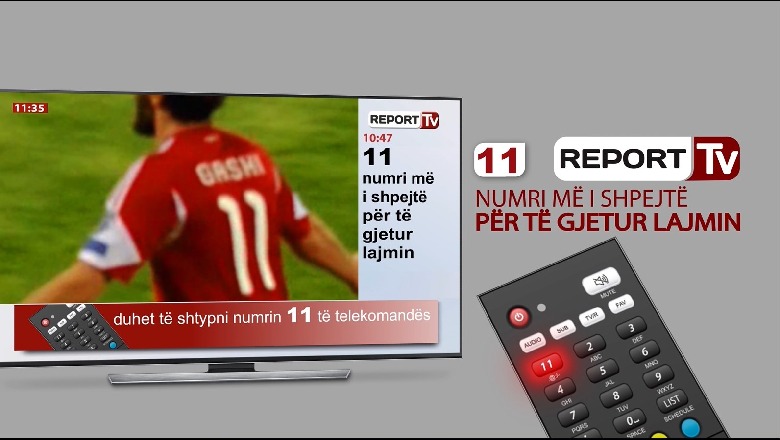 1 Tetor 2019, 16:02Për të gjetur Report Tv bëni kërkim automatik dhe duhet të shtypni numrin 11 në telekomandë.