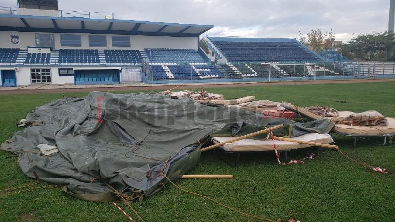 Stuhia në Durrës dëmton çadrat e tërmetit në stadium (VIDEO)