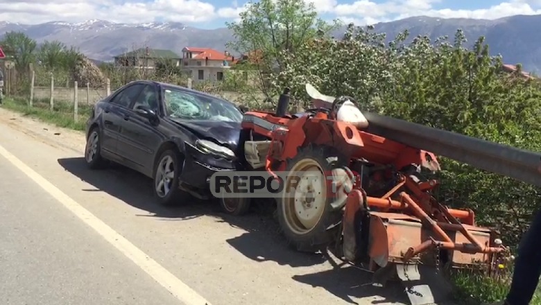 29 Prill 2019, 12:10Një person nga makina mbeti i plagosur dhe u dërgua për mjekim në spitalin e Korçës, ndërkohë që shoferi i traktorit është jashtë rrezikut për jetën.
