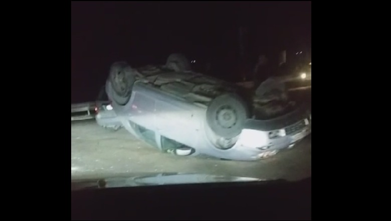 Aksident në Rrogozhinë, makina përfundon me rrota përpjetë (VIDEO)