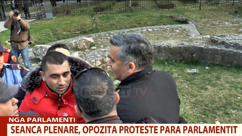 Protestuesit e PD shtyjnë ministrin Klosi teksa hynë në Kuvend