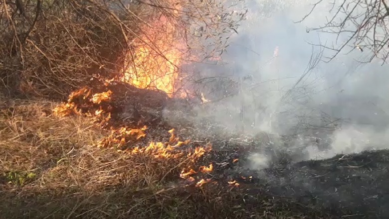 Zjarr masiv në Mallakastër, digjen dhjetëra rrënjë ullinj (VIDEO)