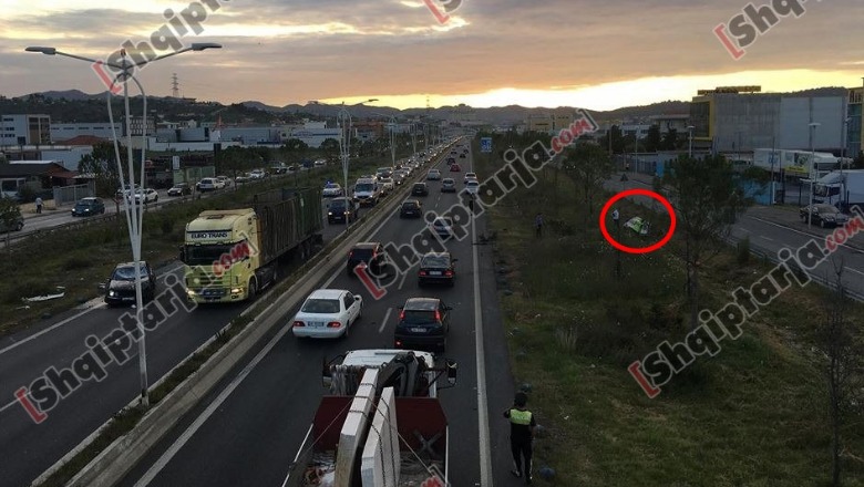 Aksident i trefishtë në Tiranë-Durrës, makina 'fluturon' mbi trafikndarëse, një i vdekur/ VIDEO