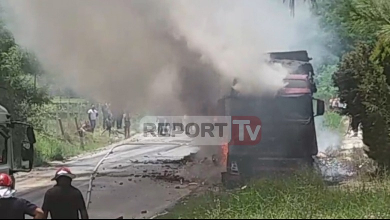 6 Korrik 2018, 13:22Një kamion ka marrë flakë në qytetin e Fierit. Sipas raportimeve të para nga terreni për Report Tv, nga flakët nuk ka asnjë të lënduar.