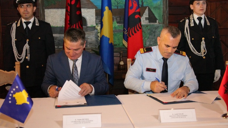 27 Qershor 2018, 14:57Drejtori i Policisë së Shtetit së Shtetit, Ardi Veliu, dhe Drejtori i Policisë së Kosovës, Naim Rexha, nënshkruan sot Memorandumin e Bashkëpunimit “Për organizimin e shërbimeve të përbashkëta të policimit rrugor".